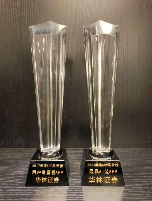 2018年2月1日,由新浪财经举办的券商互金创新发展高峰论坛暨2017券商APP风云榜颁奖典礼在北京召开,经过网络票选、专业评测、讨论征文等多轮筛选,华林证券APP成功突围,一举夺得2017券商APP风云榜用户最喜爱APP和2017券商APP风云榜最具“AI”范APP两项大奖。
