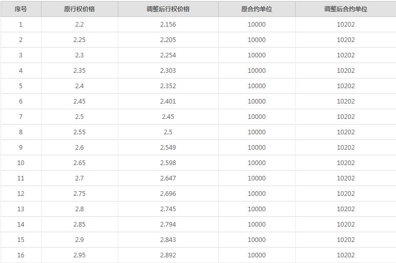 (三)行权价格、合约单位按照《交易规则》第十三条规定的公式进行如下调整: