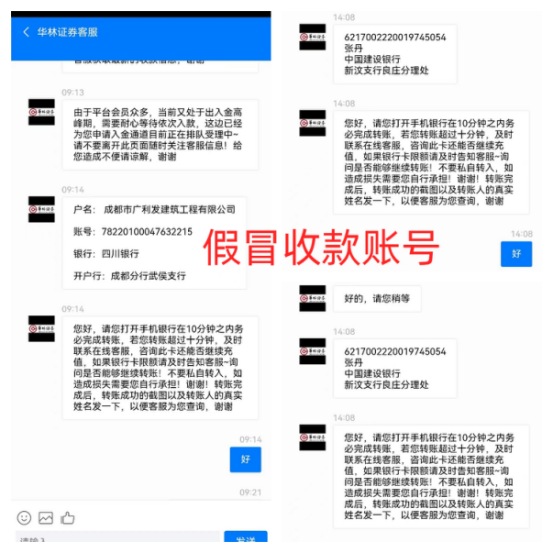 近期,我司发现有不法分子假冒华林证券股份有限公司(以下称“华林证券”或“我司”)工作人员、合作机构、微信群组等,通过网站、电话、QQ、微信、短信等方式骗取投资者的信任,以推荐股票、推荐机构业务、诱导下载假冒APP、承诺收益、收取指导费等为名目,进行非法证券活动。此类行为不仅对华林证券的名誉造成严重影响,也对广大投资者的利益带来极大损害。
