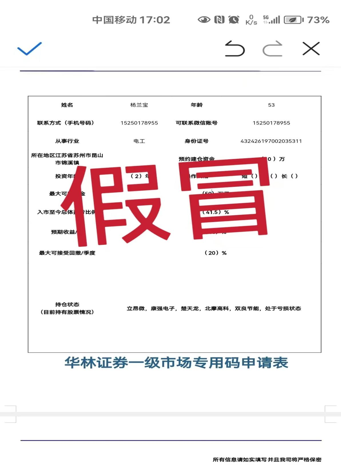近日,华林证券股份有限公司(以下称“华林证券”或“我司”)发现有不法分子冒充我司工作人员、合作机构、微信群组、企业微信群组等,发布带有我公司名称、水印的“担保协议”、“坐庄计划”等,通过短视频平台、网站、电话、QQ、微信、短信等方式骗取投资者的信任,以推荐股票、推荐机构业务、提供打板和打新服务、提供一级市场权限、内部新股申购、诱导下载假冒APP、承诺收益、收取指导费等为名目,进行非法证券活动。此类行为不仅对华林证券的名誉造成严重影响,也对广大投资者的利益带来极大损害。